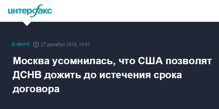 Москва усомнилась, что США позволят ДСНВ дожить до истечения срока договора