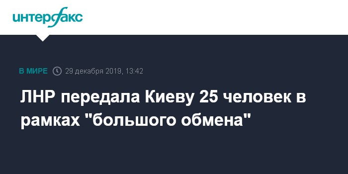Москва. 29 декабря. INTERFAX.RU - Самопровозглашенная Луганская народная республика передала Киеву первых участников "большого обмена" пленными, сообщает телеканал "Россия-24" (ВГТРК).