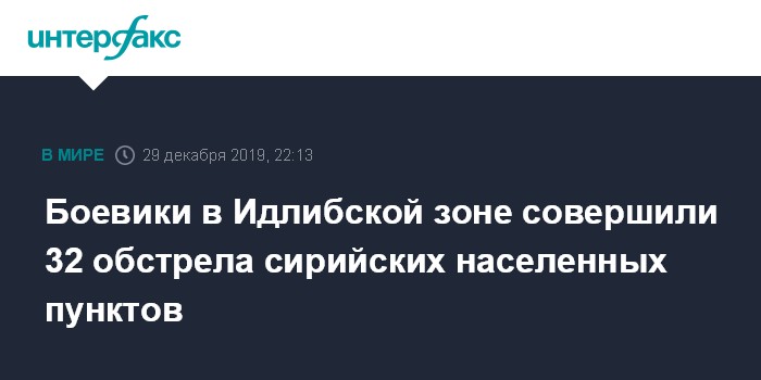 Боевики в Идлибской зоне совершили 32 обстрела сирийских населенных пунктов