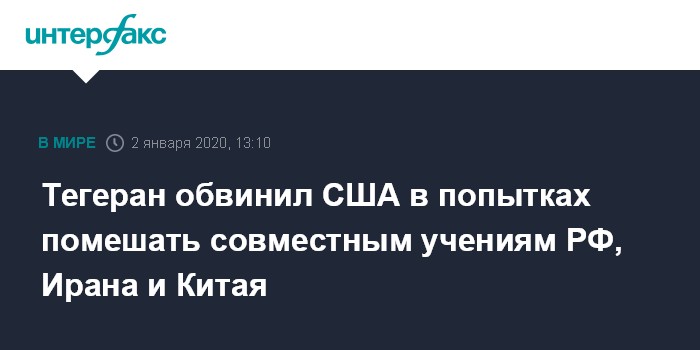 Тегеран обвинил США в попытках помешать совместным учениям РФ, Ирана и Китая