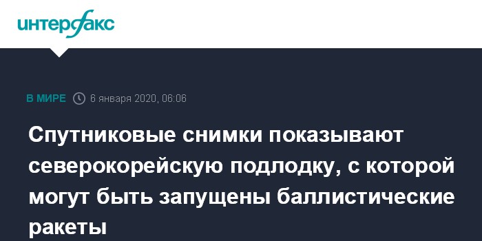Москва. 6 января. INTERFAX.RU - Подводная лодка, с которой могут быть запущены баллистические ракеты, обнаружена в северокорейском порту Синпхо, сообщает сайт 38 North.