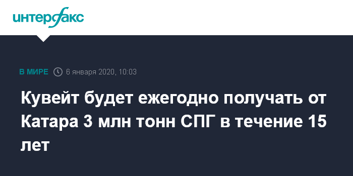 Москва. 6 января. INTERFAX.RU - Qatar Petroleum и Kuwait Petroleum Corporation заключили долгосрочное соглашение о купле-продаже на поставку сжиженного природного газа в Кувейт в объеме до 3 млн тонн в год.