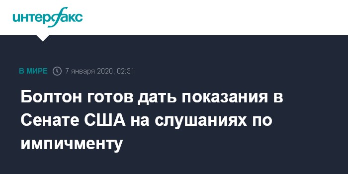 Болтон готов дать показания в Сенате США на слушаниях по импичменту