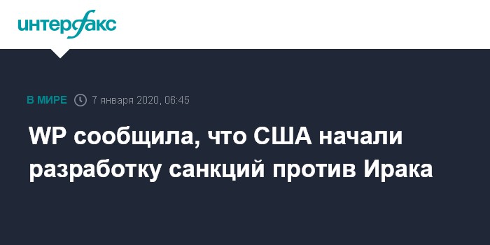 Москва. 7 января. INTERFAX.RU - Американская администрация приступила к разработке возможных ограничительных мер в отношении Ирака, но единого мнения среди чиновников на данный момент нет, пишет The Washington Post со ссылкой на троих чиновников США.