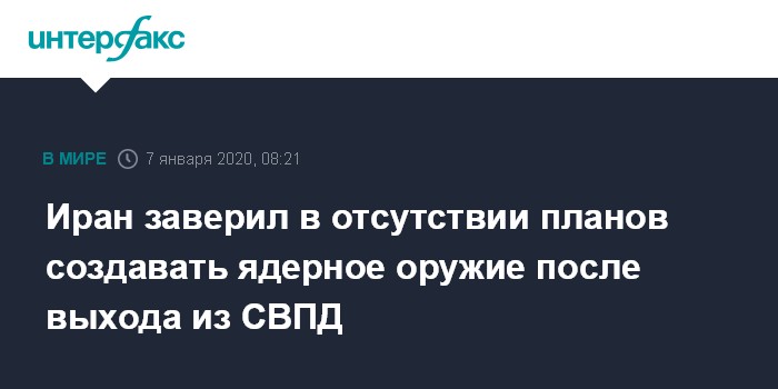 Иран заверил в отсутствии планов создавать ядерное оружие после выхода из СВПД