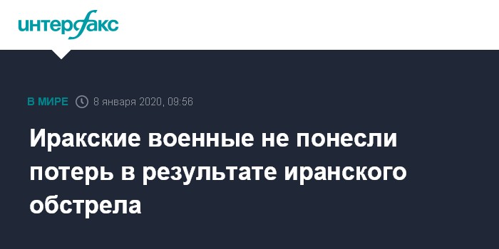 Москва. 8 января. INTERFAX.RU - В иракской армии сообщили, что не понесли потерь во время проведенного иранским Корпусом стражей Исламской революции (КСИР) обстрела, передают западные СМИ.