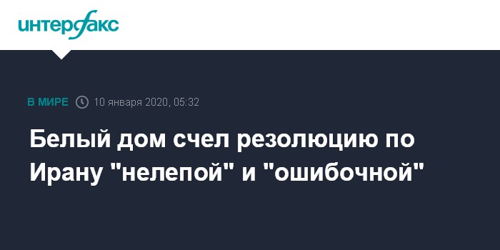 Москва. 10 января. INTERFAX.RU - Резолюция, ограничивающая военные полномочия президента США по Ирану, которую сегодня приняла Палата представителей США, является "нелепой" и "абсолютно ошибочной", заявил представитель Белого дома Хоган Гидли.