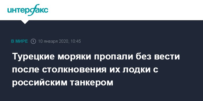 Турецкие моряки пропали без вести после столкновения их лодки с российским танкером