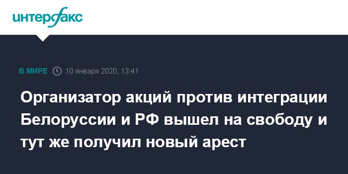 Организатор акций против интеграции Белоруссии и РФ вышел на свободу и тут же получил новый арест