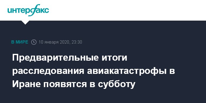 Предварительные итоги расследования авиакатастрофы в Иране появятся в субботу