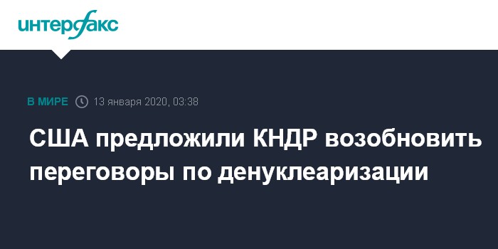 Москва. 13 января. INTERFAX.RU - Администрация президента США Дональда Трампа предложила Пхеньяну возобновить переговоры по денуклеаризации в Стокгольме, сообщил советник президента по нацбезопасности Роберт О'Брайен в интервью порталу Axios.