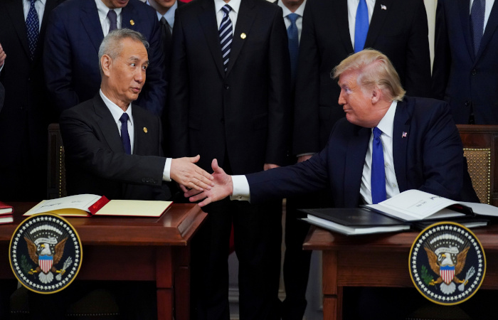 Москва. 15 января. INTERFAX.RU - Президент США Дональд Трамп и вице-премьер Госсовета КНР Лю Хэ подписали в среду соглашение о первой фазе урегулирования торгового спора между двумя странами.