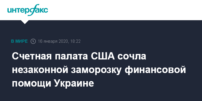 Москва. 16 января. INTERFAX.RU - Решение администрации президента США Дональда Трампа о замораживании финансовой помощи Украине было незаконным, сообщается в опубликованном в четверг отчете американской Счетной палаты.