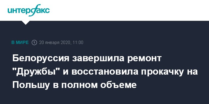 Там уточнили, что прокачка нефти в направлении Польши восстановлена в полном объеме.