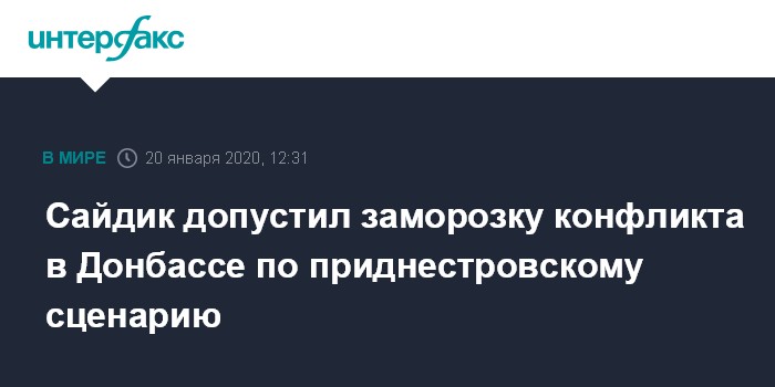 Москва. 20 января. INTERFAX.RU - Бывший представитель действующего председателя ОБСЕ в Трехсторонней контактной группе (ТГК) по урегулированию ситуации на востоке Украины Мартин Сайдик не исключает, что конфликт в Донбассе будет заморожен по примеру приднестровского на десятилетия.