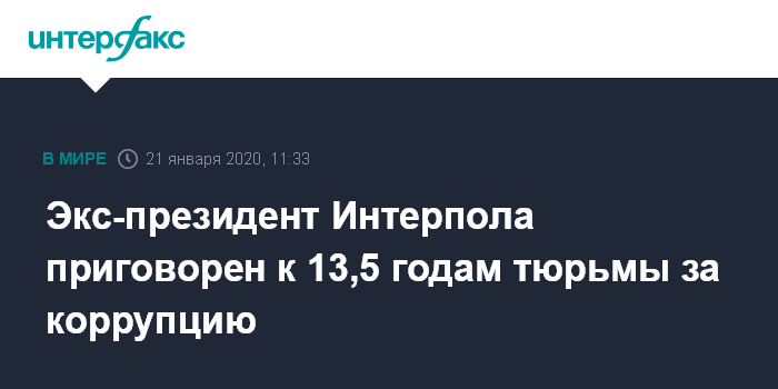 Экс-президент Интерпола приговорен к 13,5 годам тюрьмы за коррупцию