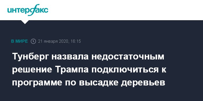 Тунберг назвала недостаточным решение Трампа подключиться к программе по высадке деревьев