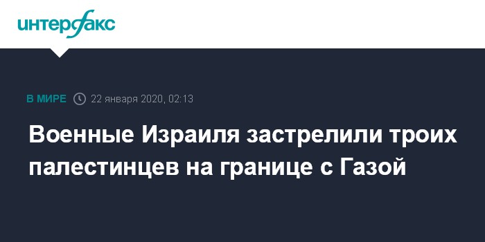 Москва. 22 января. INTERFAX.RU - Израильские военные застрелили трех палестинцев, которые пытались перебраться в страну из сектора Газа, сообщает пресс-служба Армии обороны Израиля (IDF) в твиттере.