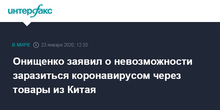 Москва. 23 января. INTERFAX.RU - Заразиться коронавирусом через одежду, заказанную из Китая через интернет, практически невозможно, заявил экс-глава Роспотребнадзора, академик РАН и врач-эпидемиолог Геннадий Онищенко.