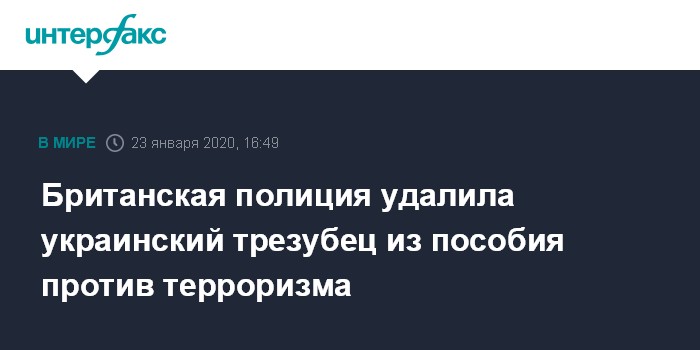 Москва. 23 января. INTERFAX.RU - Полиция Великобритании решила удалить изображение герба Украины - трезубца - из "Руководства по противодействию экстремизму".