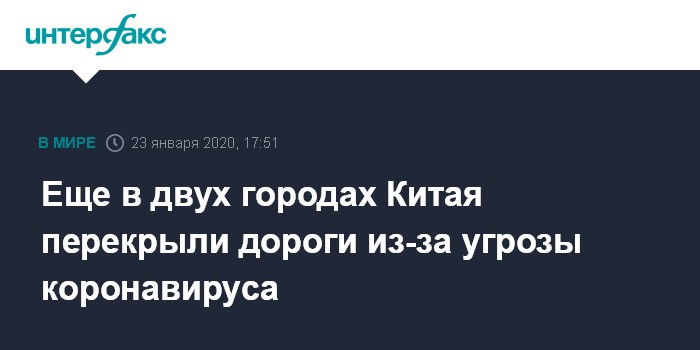В частности, власти города Сяньтао с населением 1,5 млн человек закрыли 30 въездов на шоссе, соединяющее Ухань с городом Шэньчжэнь на юго-востоке (провинция Гуандун).