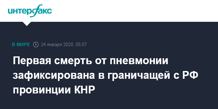 Первая смерть от пневмонии зафиксирована в граничащей с РФ провинции КНР