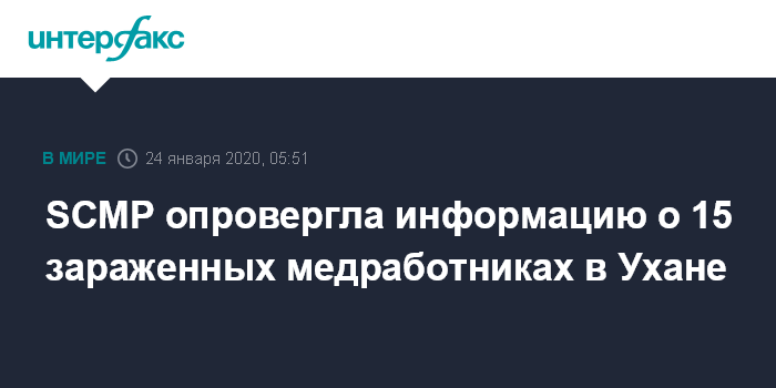 SCMP опровергла информацию о 15 зараженных медработниках в Ухане