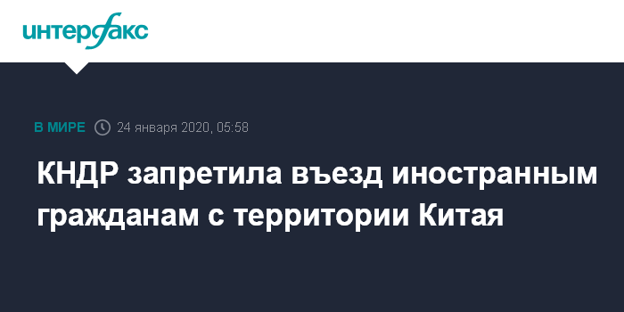 Москва. 24 января. INTERFAX.RU - КНДР приостановила авиасообщение между Пекином и Пхеньяном до 10 февраля и запретила въезд иностранным гражданам с территории Китая любым видом транспорта, сообщает в пятницу посольство России в КНДР на своей странице в фейсбуке.