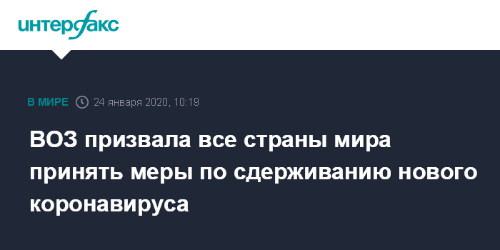 ВОЗ призвала все страны мира принять меры по сдерживанию нового коронавируса