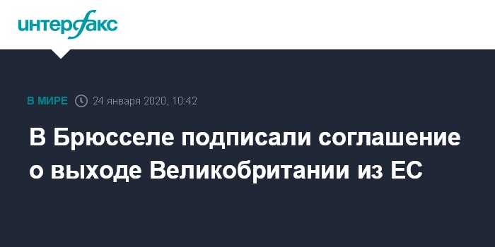 Москва. 24 января. INTERFAX.RU - Председатель Европейского совета Шарль Мишель и председатель Европейской комиссии Урсула фон дер Ляйен подписали в Брюсселе соглашение о выходе Великобритании из Европейского союза.