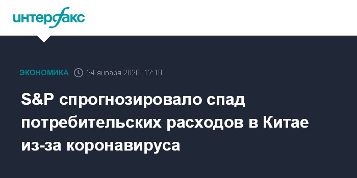 Москва. 24 января. INTERFAX.RU - Вспышка пневмонии, вызванного новым коронавирусом, скажется на потребительских расходах в Китае, которые становятся все более важным двигателем экономического роста, считают аналитики агентства S&P Global Ratings.