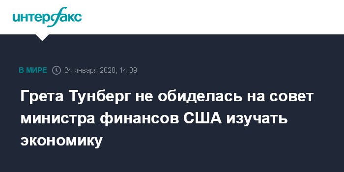 Москва. 24 января. INTERFAX.RU - Шведская экоактивистка Грета Тунберг заявила, что комментарий министра финансов США Стивена Мнучина, который посоветовал ей изучать экономику, не задел ее.