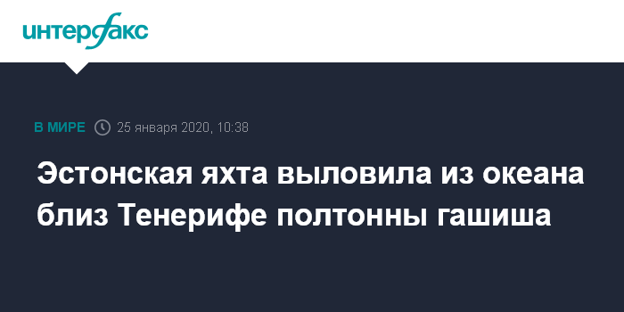 Москва. 25 января. INTERFAX.RU - Компания путешественников, отправившаяся туристами на Тенерифе на эстонском паруснике Wesipruul, обнаружила плескающиеся в океане бережно упакованные ящики, на которых были номера и буквы.