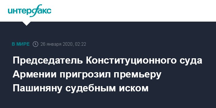Председатель Конституционного суда Армении пригрозил премьеру Пашиняну судебным иском