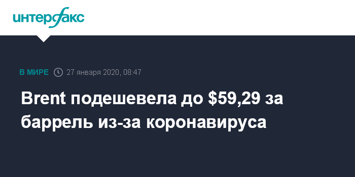 Brent подешевела до $59,29 за баррель из-за коронавируса