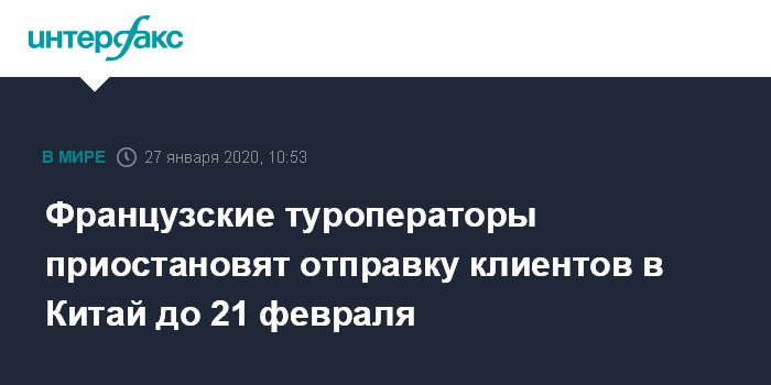 Французские туроператоры приостановят отправку клиентов в Китай до 21 февраля
