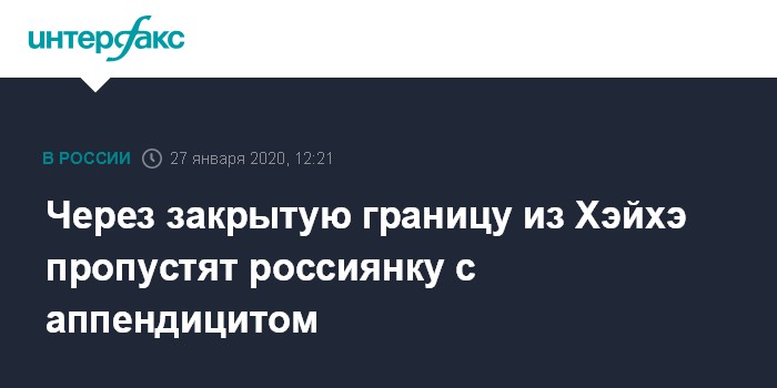 КПП в Хэйхэ закрыли перед празднованием Нового года по китайскому календарю. Предполагалось, что он снова заработает 27 января, но перерыв продлили в связи с распространением нового коронавируса, вызывающего пневмонию. На утро понедельника в Китае с учетом Гонконга и Тайваня был зафиксирован 2761 случай заражения, 80 заболевших умерли.