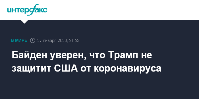 Москва. 27 января. INTERFAX.RU - Бывший вице-президент США Джо Байден в понедельник заявил, что президент США Дональд Трамп хуже, чем кто-либо еще, сможет отреагировать на ситуацию с распространением коронавируса.
