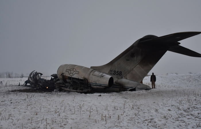 В соцсетях публикуют видео, на которых видны обломки самолета Bombardier E-11A, используемого американской армией. Пользователи соцсетей утверждают, что речь идет именно о разбившемся в понедельник самолете.