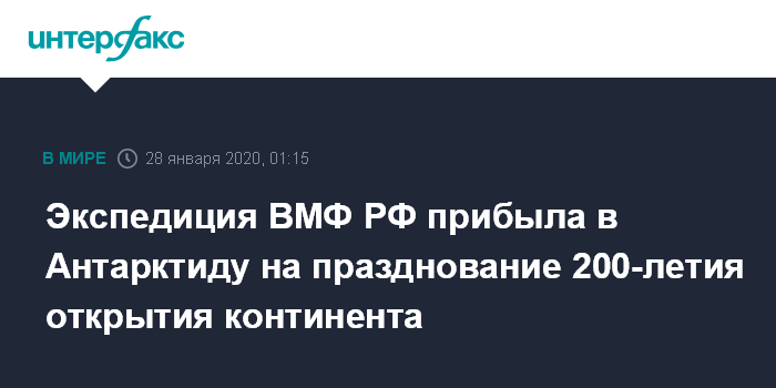 Москва. 28 января. INTERFAX.RU - Океанографические исследовательские суда (ОИС) Военно-Морского Флота (ВМФ) России "Адмирал Владимирский" и "Янтарь" прибыли к берегам Антарктиды для участия в памятных мероприятиях, посвященных 200-летию открытия шестого континента российскими моряками, которые состоятся 28 января на станции "Беллинсгаузен", сообщил во вторник представитель Департамента информации и массовых коммуникаций Минобороны РФ по ВМФ капитан 1 ранга Игорь Дыгало.