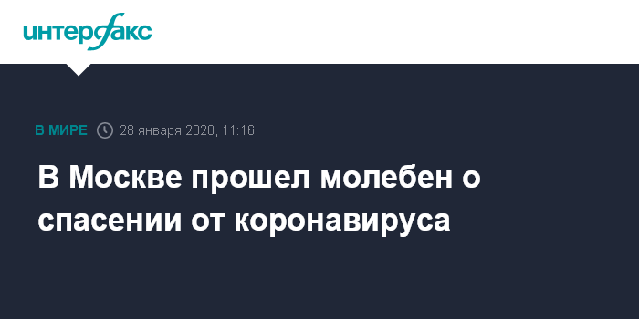 "Настоятель подворья протоиерей Игорь Зуев отслужил молебен о спасении от эпидемии коронавируса пневмонии, охватившей союзный России Китай", - сообщил "Интерфаксу" во вторник православный активист Кирилл Фролов.