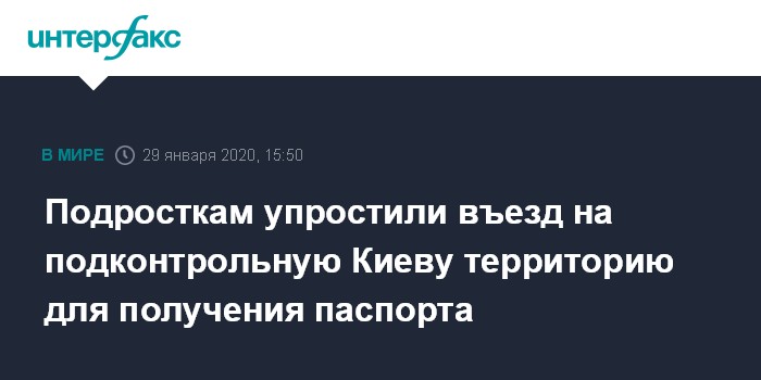 Москва. 29 января. INTERFAX.RU - Правительство Украины поддержало решение упростить процедуру выезда с неподконтрольной Киеву территории Донбасса подросткам 14-16 лет, которые не имели возможности оформить паспорт гражданина Украины или которые его потеряли.
