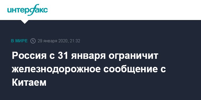 Россия с 31 января ограничит железнодорожное сообщение с Китаем