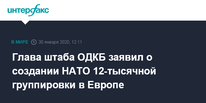 Глава штаба ОДКБ заявил о создании НАТО 12-тысячной группировки в Европе