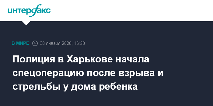 Москва. 30 января. INTERFAX.RU - Выстрелы и взрыв прозвучали в четверг днем в Харькове рядом с областным домом ребенка №2; после этого украинская полиция начала спецоперацию.