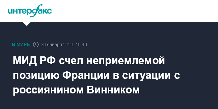 МИД РФ счел неприемлемой позицию Франции в ситуации с россиянином Винником