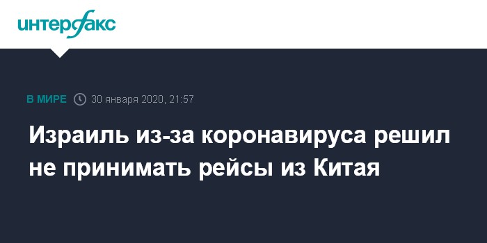 Москва. 30 января. INTERFAX.RU - Израиль временно не будет принимать рейсы, прибывающие из китайских городов, сообщает в четверг Times of Israel.