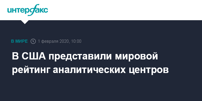 Москва. 1 февраля. INTERFAX.RU - В Вашингтоне в Центре стратегических и международных исследований (CSIS) в торжественной обстановке был представлен ежегодный мировой рейтинг аналитических центров. Его составлением занимаются ученые из университета Пенсильвании (США). В прошлом году, 14-м по счету, он составлялся на основе опроса почти двух тысяч организаций и четырех тысяч экспертов по всему миру. Это работники аналитических центров, научных кругов, неправительственных организаций и СМИ.