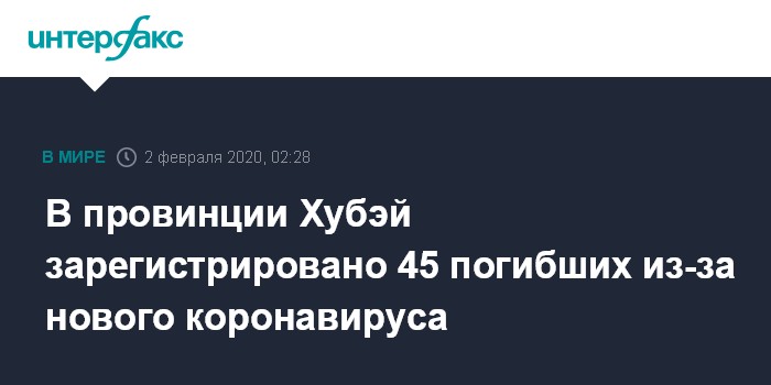 В провинции Хубэй зарегистрировано 45 погибших из-за нового коронавируса