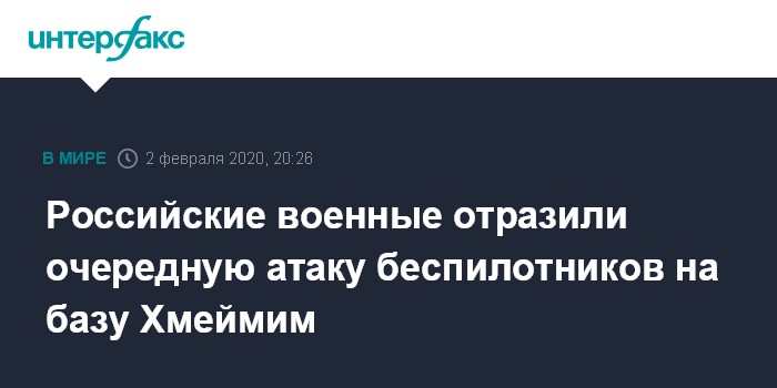 За последнее время это не первая попытка атаковать Хмеймим с помощью беспилотников. 20 января стало известно об уничтожении трех аппаратов, которые приближались с северо-восточного направления, 23 декабря также сообщалось о попытке нападения на Хмеймим при помощи беспилотников.